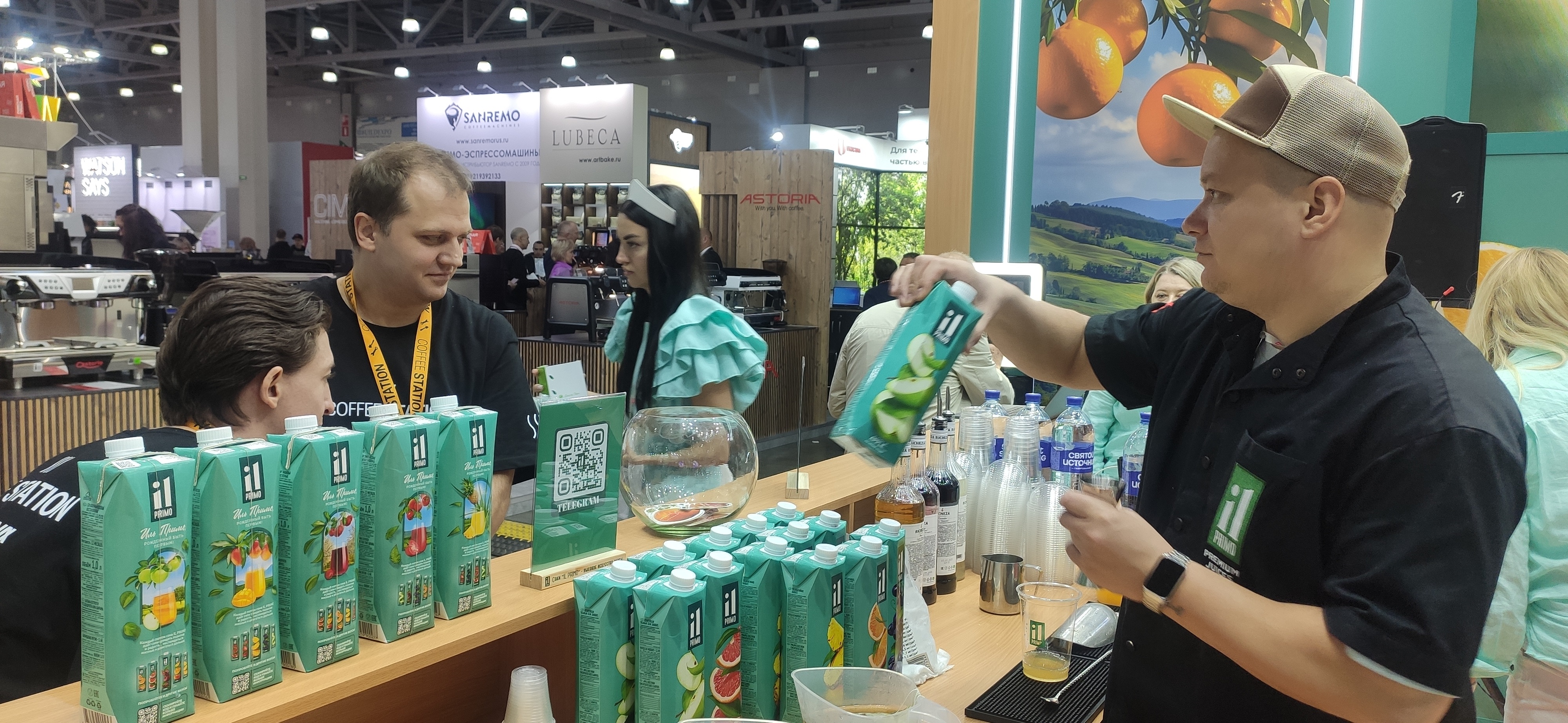 Компания «Сады Придонья» в очередной раз приняла участие в этом крупнейшем мероприятии. Стенд компании привлекал внимание своей яркостью, инновационным дизайном и, конечно, передовыми решениями, представленными для широкой аудитории. Каждый посетитель смог не только ознакомиться с продукцией Садов Придонья, но и получить исчерпывающую информацию о ее преимуществах и возможностях применения. Дегустации, мастер-классы на основе премиальных соков и молочных альтернатив брендов компании, возможность продемонстрировать свои навыки на латте-арт дуэлях, интерактив «Нейрохудожник», где каждый мог сделать памятные фото с помощью нейросети и, конечно, большое количество подарков. Это и многое другое организовали Сады Придонья для гостей выставки.